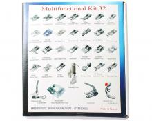 Caja con 32 prensatelas universales compatibles con la mayor parte de máquina domésticas. Incluye: